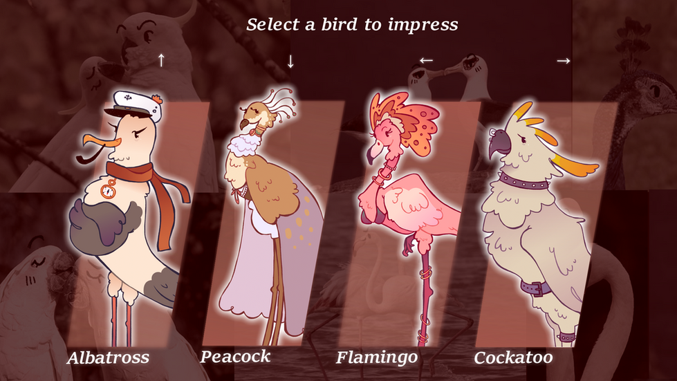 Mate Me If You Can! is an interactive dance game that can be paired with a dance mat. In this game you play as a bird trying to find a mate, so dance for your life!